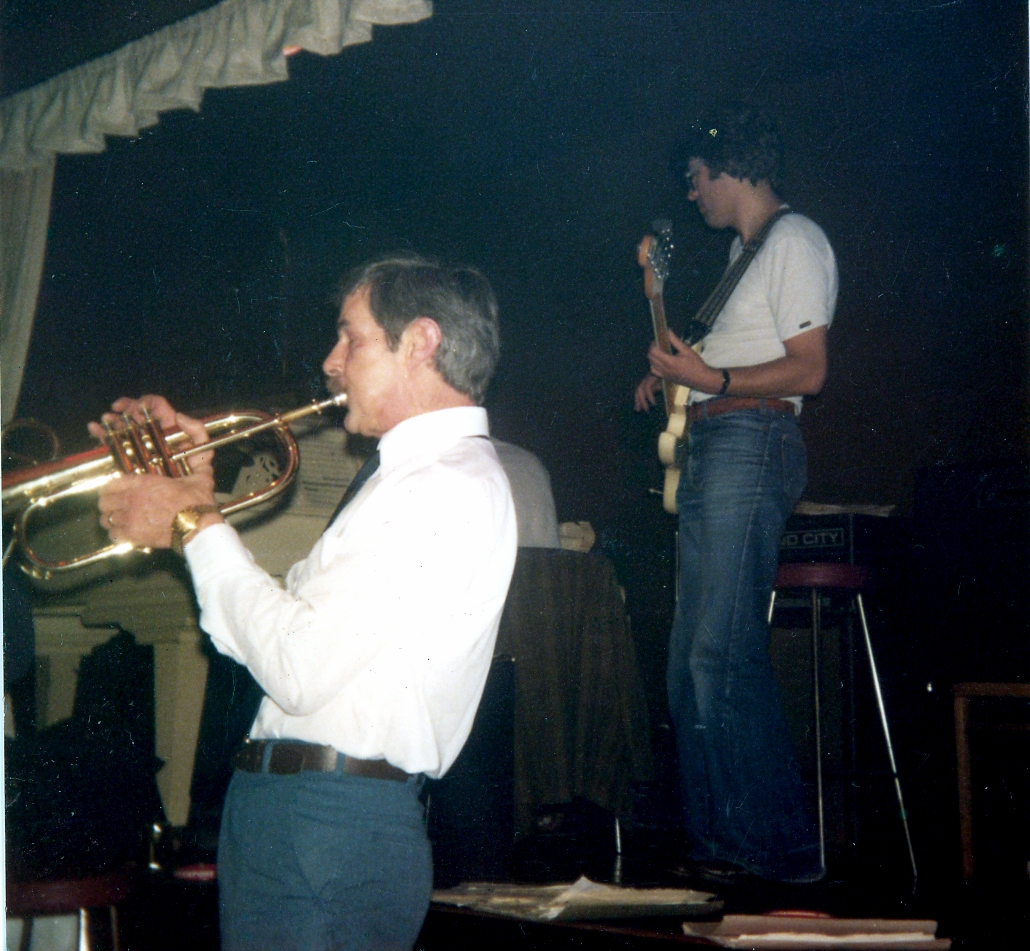 Phil with Jimmy Deuchar (flugel) playing the Sands in Broughty Ferry (JimmyÍs home town) sometime in the 70s.